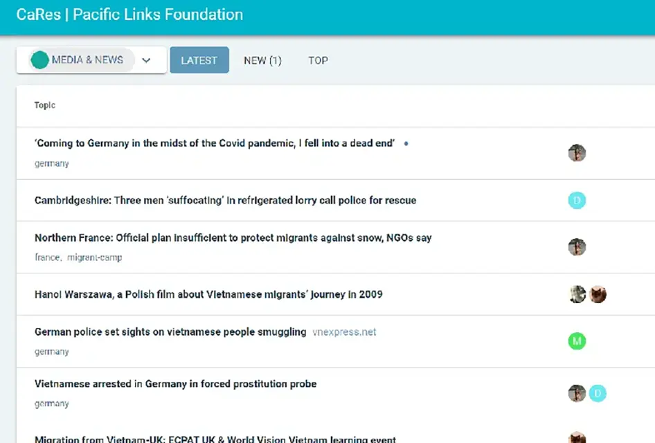 The CaRes Forum for frontline practitioners to exchange timely information pertinent to Vietnamese migrants, and (potential) victims of trafficking, and form connections with other field experts.